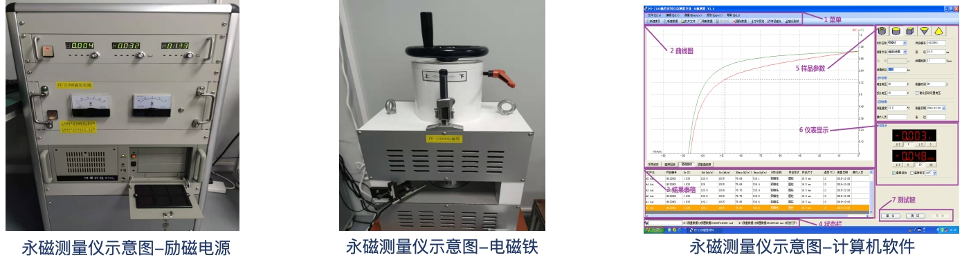 永久磁石材料に対して、残留磁気、保磁力、最大磁気エネルギー積、磁気モーメント、磁気偏角、表磁気などの磁気エネルギーパラメータ測定を行うために、高精度永久磁石測定システム、超高保磁力磁気特性測定器、三次元磁場イメージングマッピングシステムなどの設備を配置することができる。