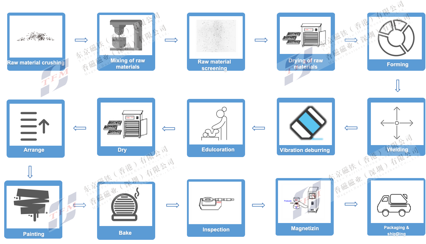 永磁粉末與樹脂或質硬量輕的塑膠等粘結資料相混合,可按照用戶要求直接成型。 防腐蝕管道:噴塗,電泳等多種處理管道。
