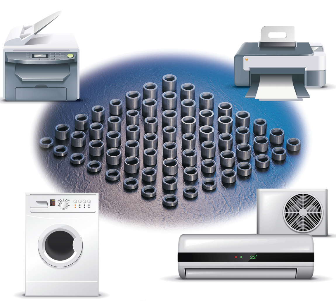 極异方性環狀燒結鐵氧體磁石為外表面多極充磁的環形磁石,是步進馬達的關鍵性零件,廣泛應用於消費電子、工業產品等領域,如掃描儀、打印機、熱水器、電風扇、冷氣機直流無刷馬達、暖風機、提款機等。